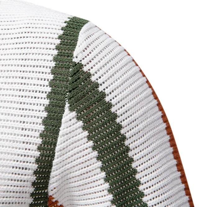 Luxury men's breathable knit polo with textured open weave and vertical stripe design inspired by Mediterranean summer style.