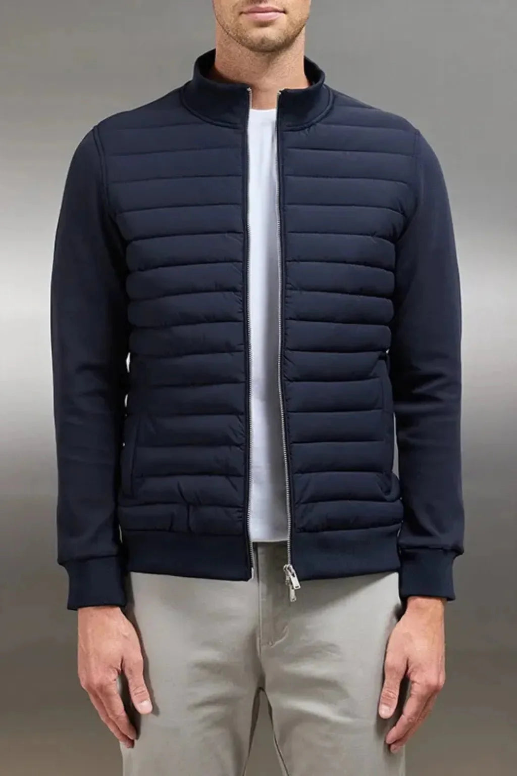 Urban elegance meets performance. The AURELIO Hybrid Bomber combines soft stretch sleeves with a quilted insulated body, designed for lightweight warmth and everyday comfort.